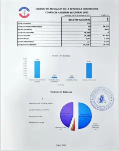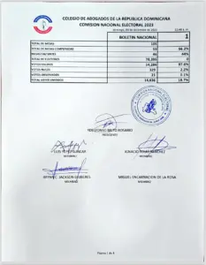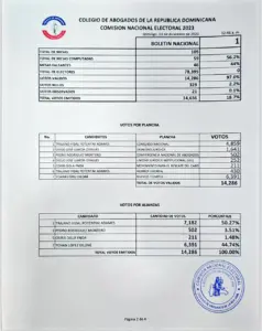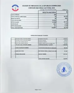 En las actas oficiales del conteo de votos se lee que Vidal Potentini lleva ligera ventaja Presidencia del gremio de abogados ante (PRM), Yohan López, quien al inicio del conteo se perfilaba como el virtual ganador.