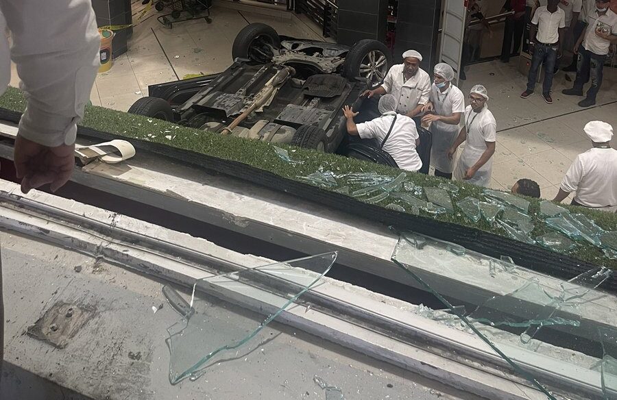 Panorama Nacional. -Un vehículo se estrelló dentro del Supermercado Nacional en la Abraham Lincoln, luego de que el conductor acelerara en el estacionamiento del establecimiento.
