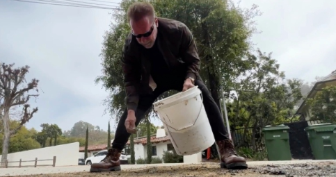 Schwarzenegger repara un hoyo en su vecindario