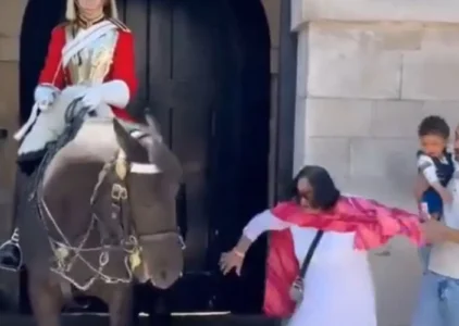 Caballo de la Guardia real británica muerde a una turista