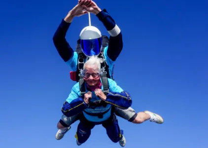 Una mujer celebra su 102 cumpleaños saltando en paracaídas