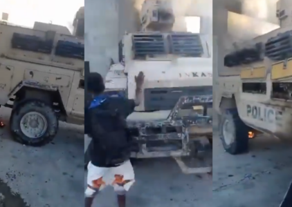 Banda haitiana prende fuego a un vehículo blindado de la Policía
