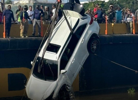 Vehículo cae desde el puente flotante sobre el río Ozama